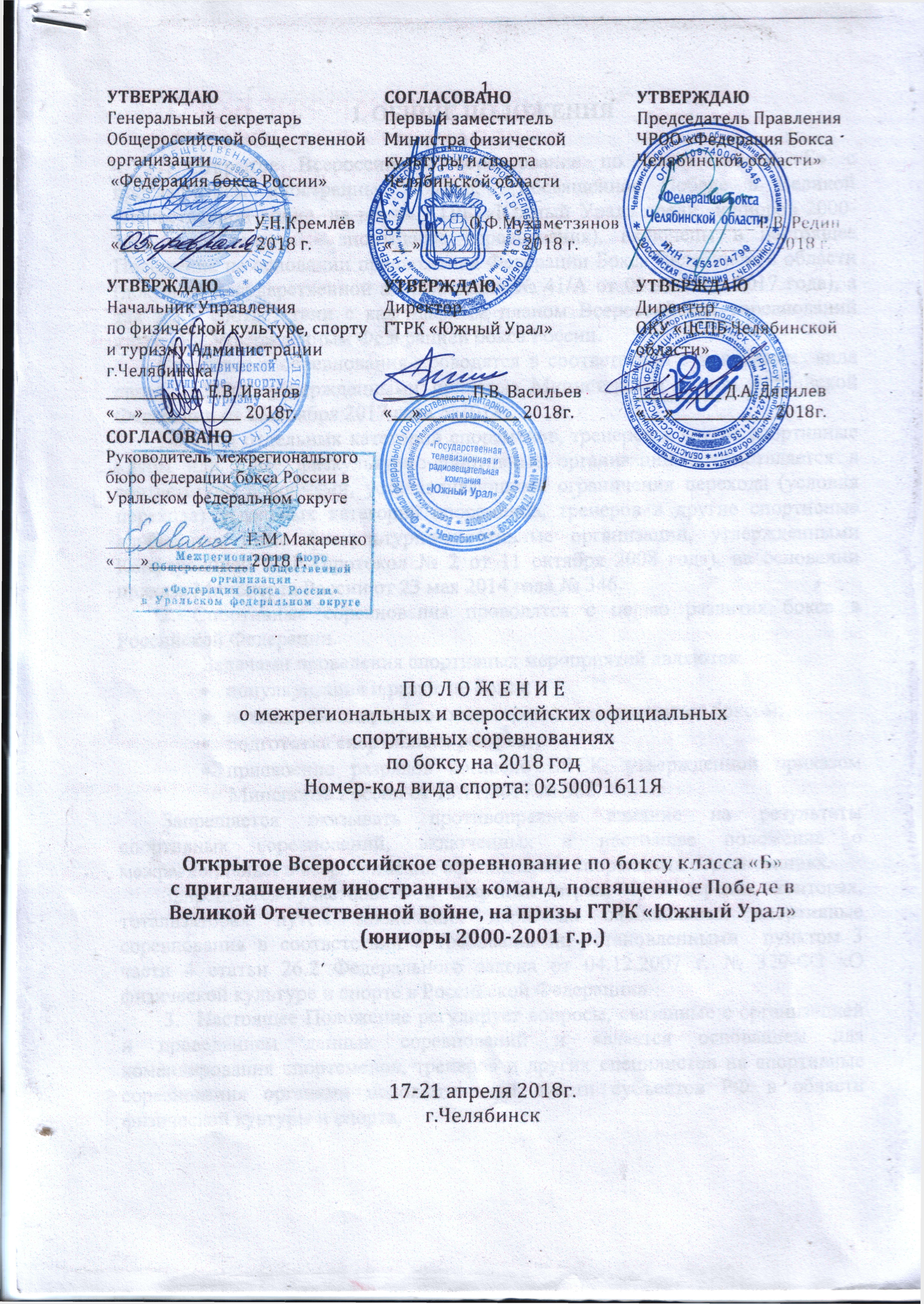 Открытое Всероссийское соревнование по боксу класса Б с приглашением иностранных команд, посв. Победе в ВОВ, на призы ГТРК "Южный Урал" (юниоры 2000-2001 г.р.), 17-21.04.2018г.